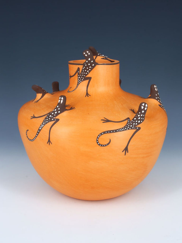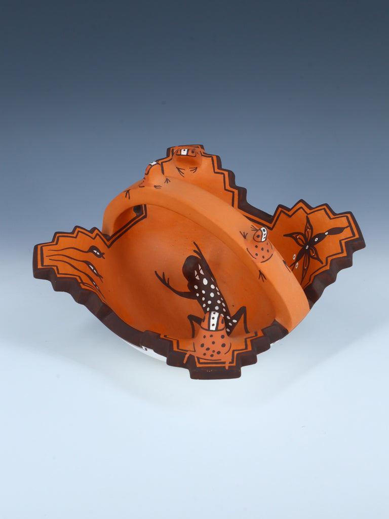 Hand Coiled Zuni Pueblo Lizard Pottery Bowl