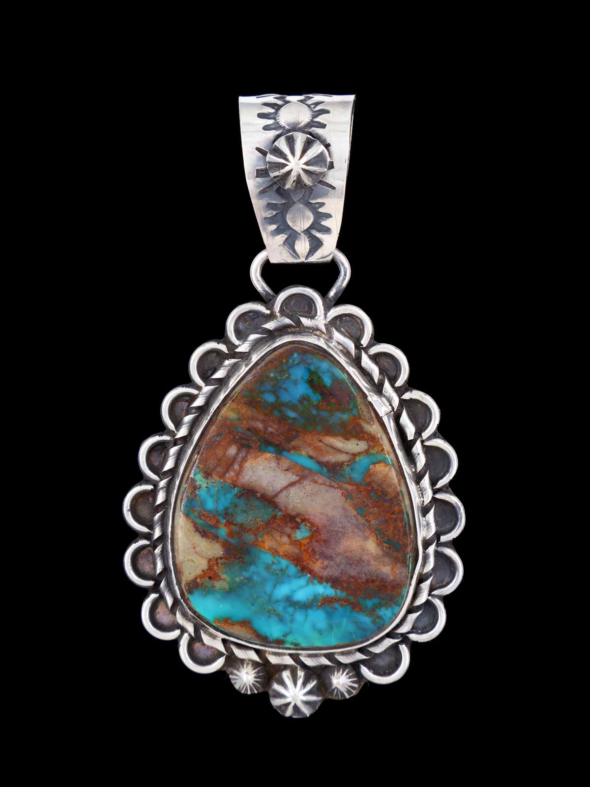 Native American Sterling Silver Natural Pilot Mountain Turquoise Pendant