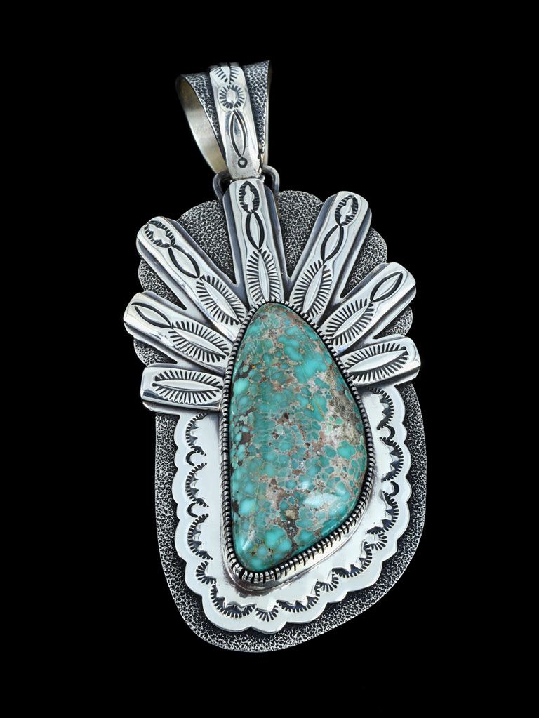 Navajo Sterling Silver and Kingman Turquoise Petroglyph Pendant
