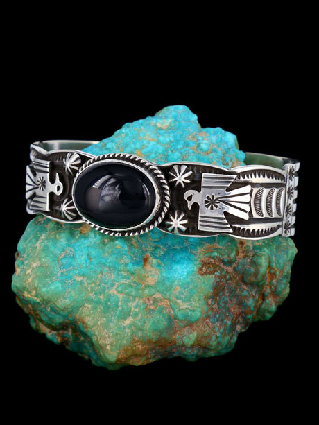 Navajo Jewelry Sterling Silver Black Onyx Thunderbird Bracelet