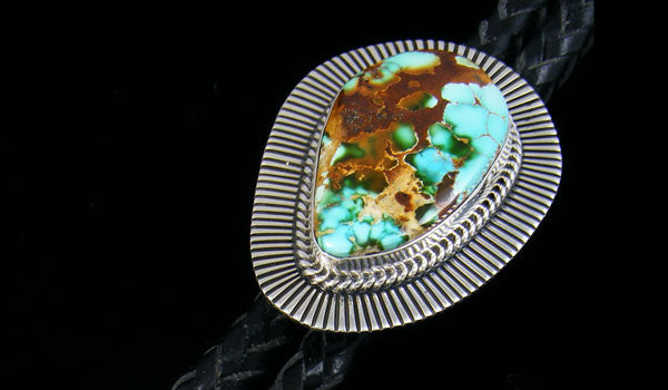Native American Sterling Silver Sonoran Gold Turquoise Bolo Tie