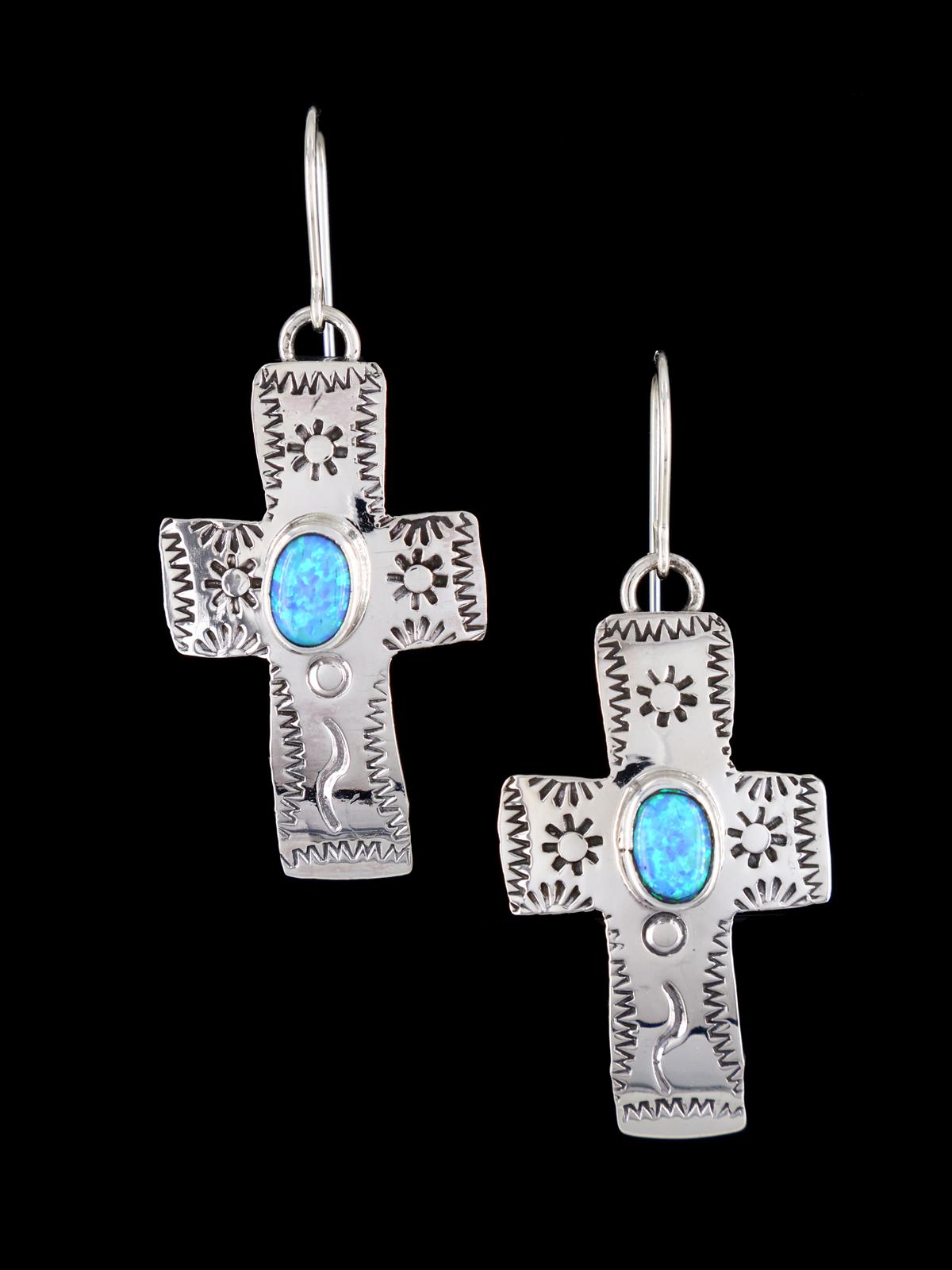 Navajo Sterling Silver Opalite Dangle Cross Earrings