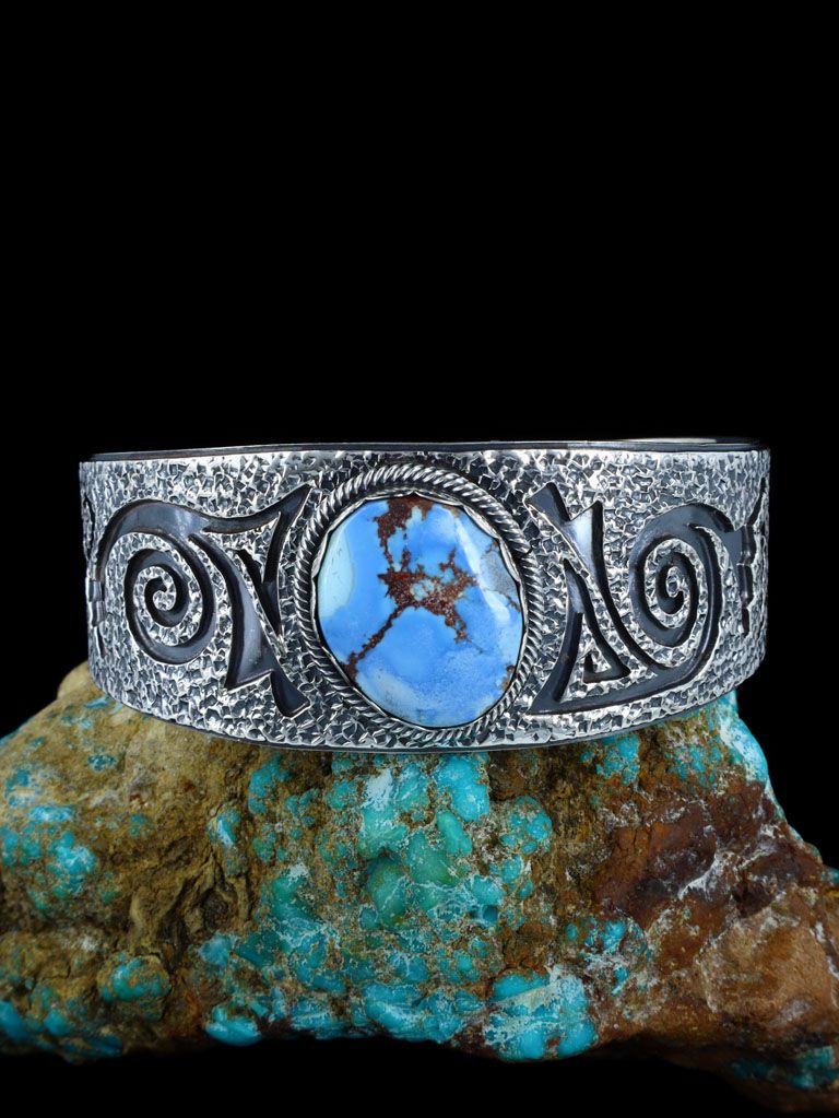 Native American Jewelry Sterling Silver Kingman Turquoise Bracelet