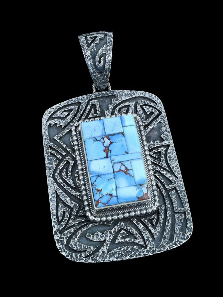 Sterling Silver Kingman Turquoise Overlay Navajo Pendant