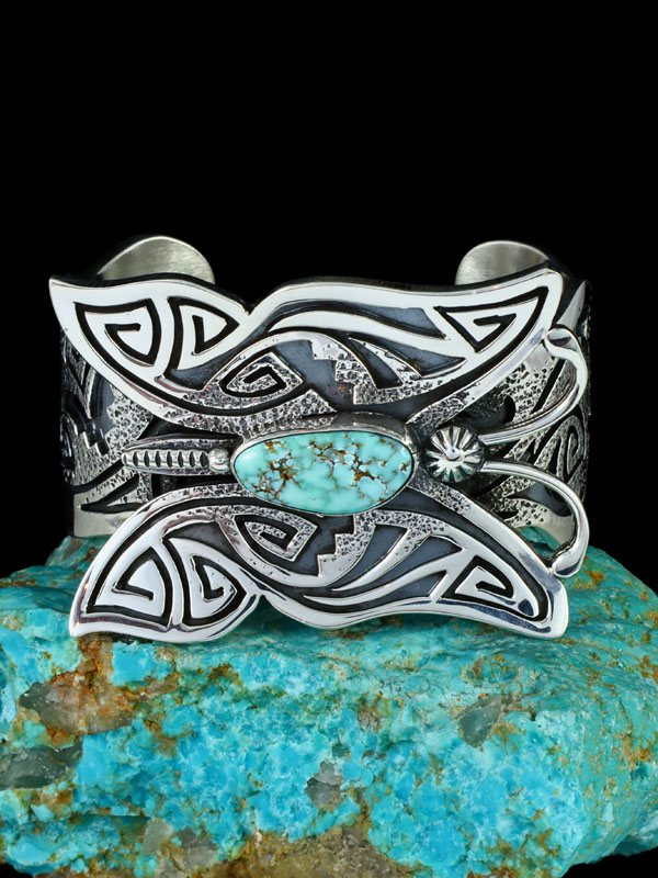 Navajo Carico Lake Turquoise Butterfly Sterling Silver Cuff Bracelet