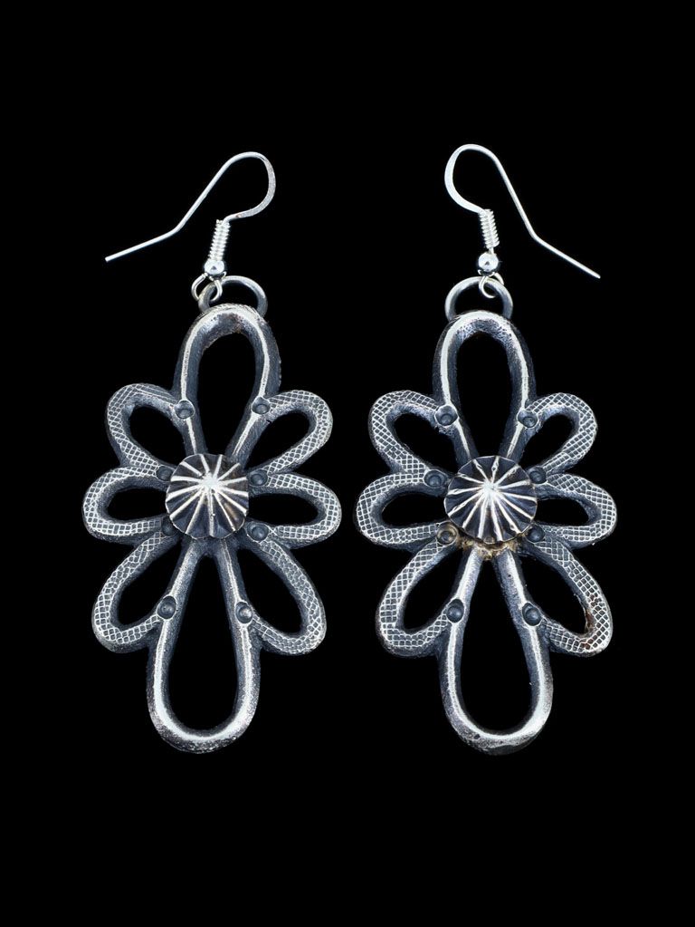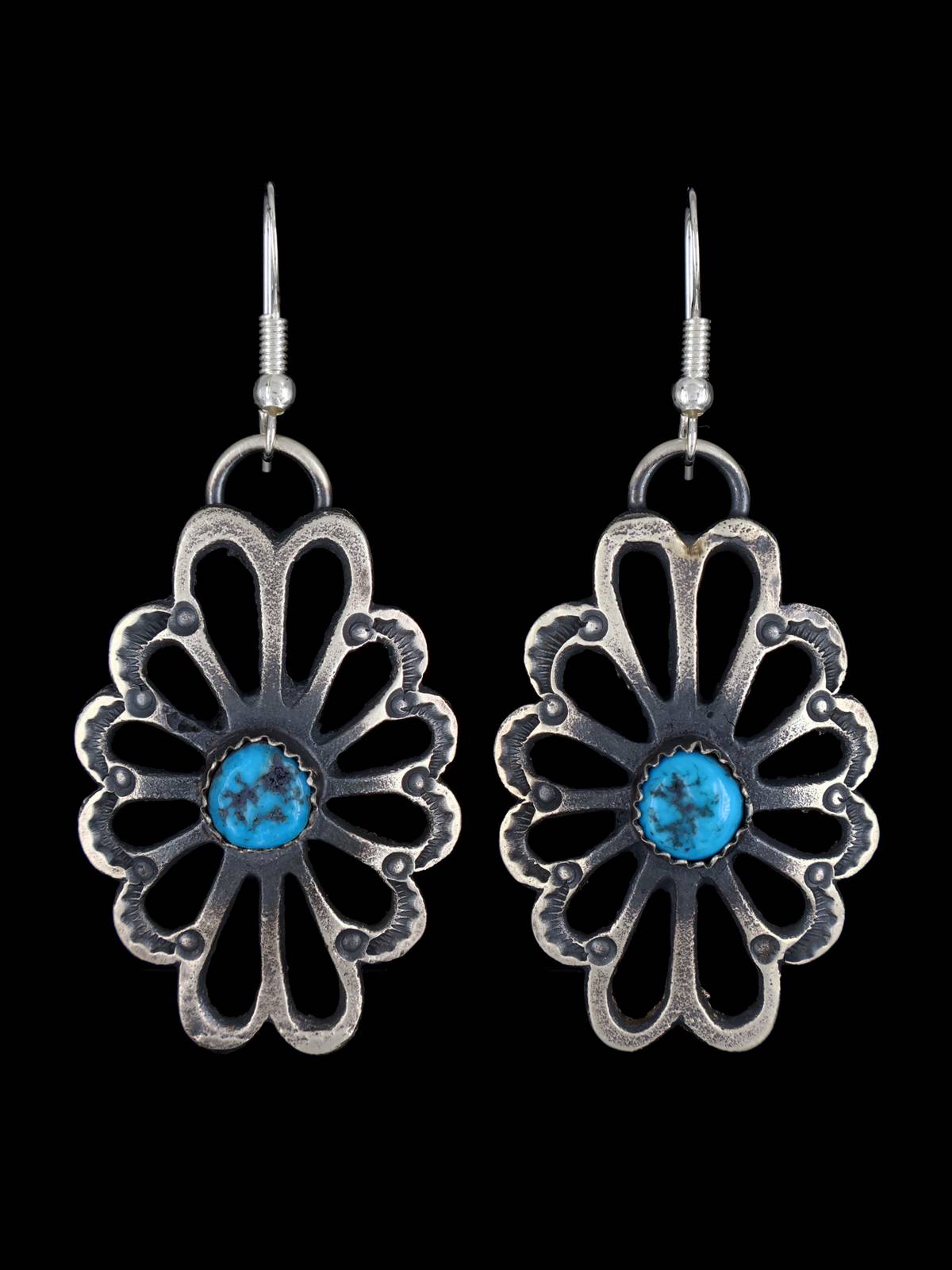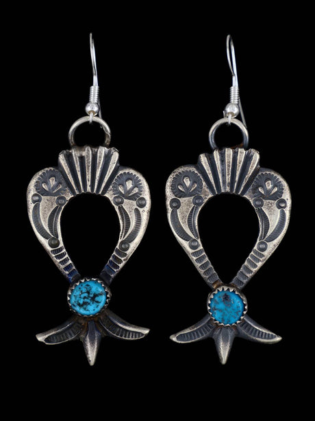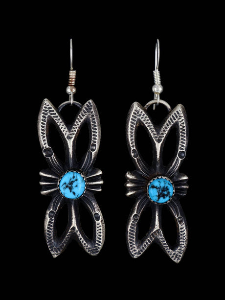 Navajo Sterling Silver Turquoise Yei Dangle Earrings