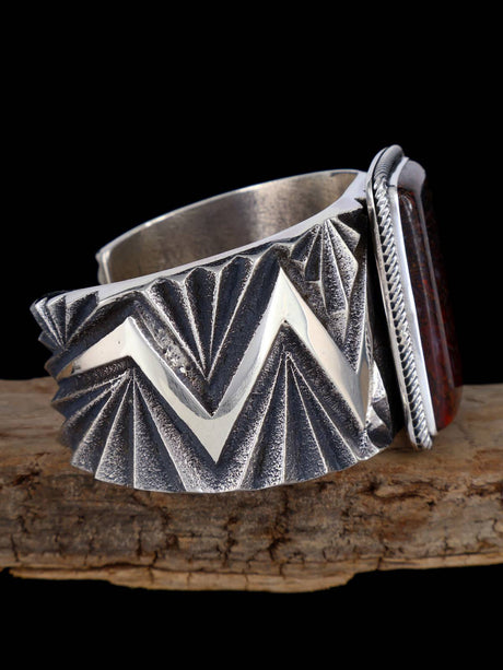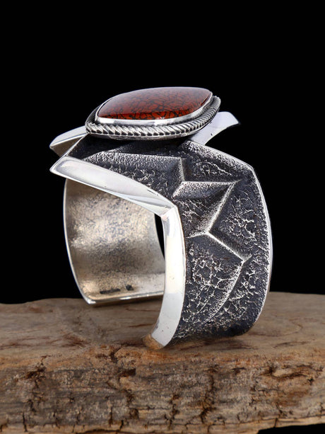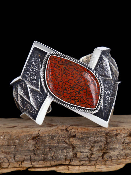 Native American Sterling Silver Coral Cobblestone Inlay Cuff Bracelet