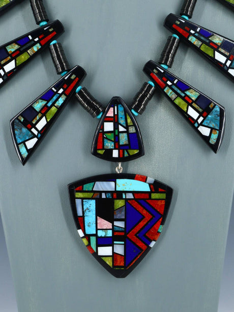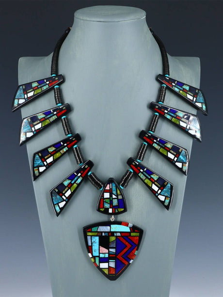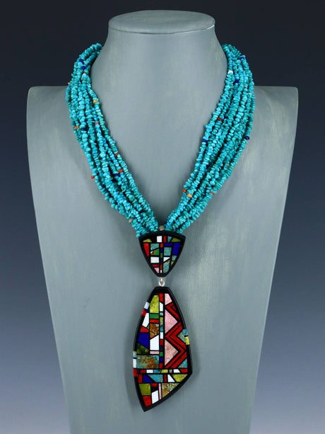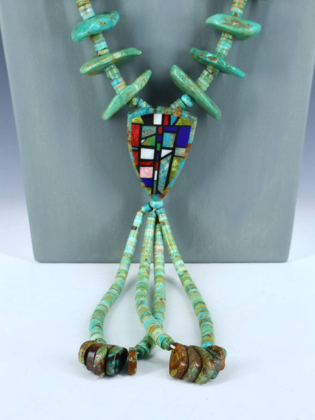 Native American Santo Domingo Mosaic Inlay Turquoise Necklace