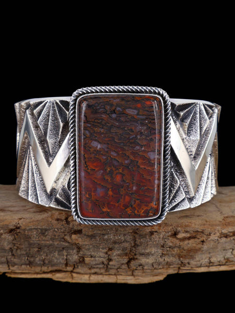Navajo Sterling Silver Jasper and Lapis Wave Inlay Bracelet