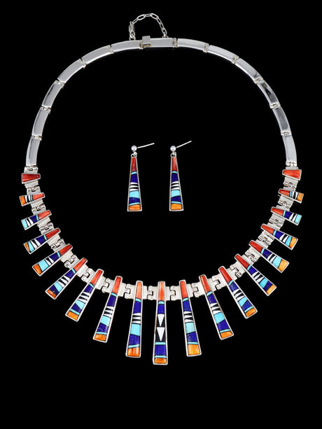Navajo Jasper and Turquoise Inlay Sterling Silver Link Necklace Set