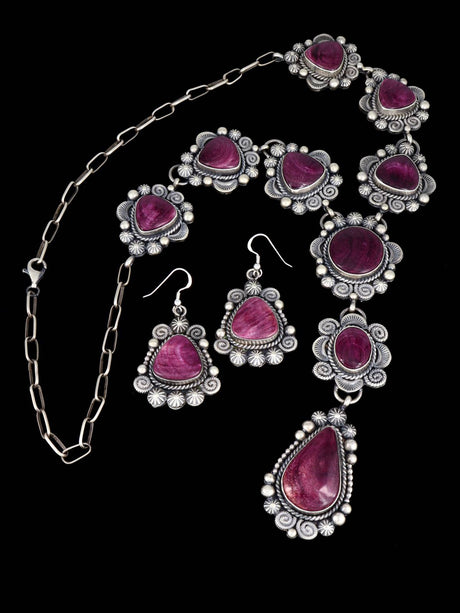 Native American Sterling Silver Spiny Oyster Lariat Y Necklace Set