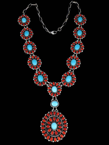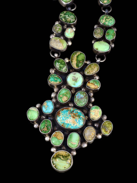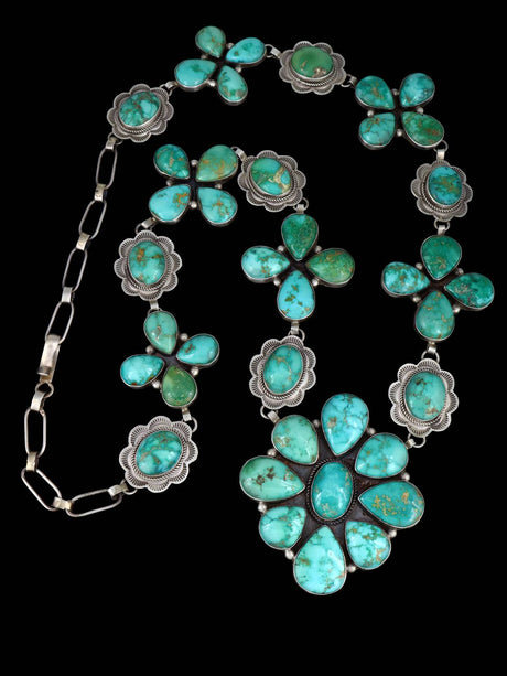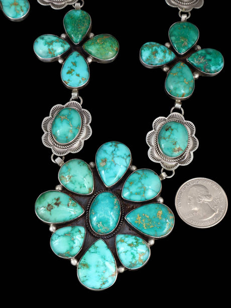 Native American Sterling Silver Turquoise Mountain Squash Blossom Necklace Set
