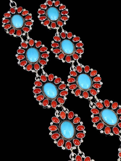 Navajo Spiny Oyster and Turquoise Inlay Sterling Silver Link Necklace Set