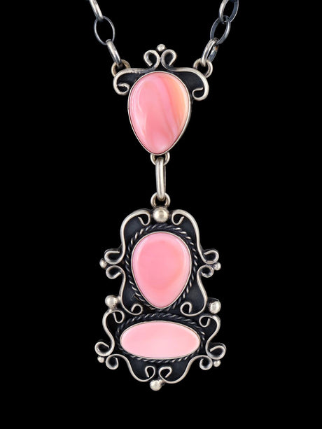 Native American Pink Conch Sterling Silver Lariat Necklace