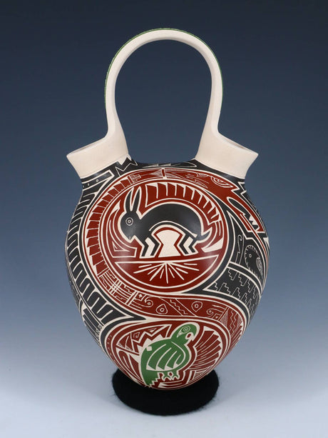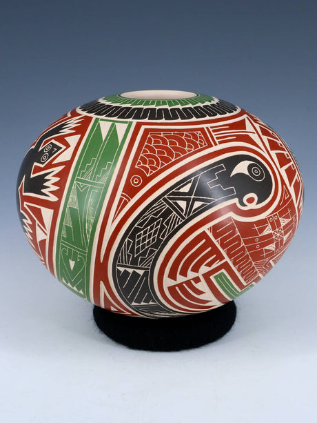 Mata Ortiz Hand Coiled Etched Wildlife Pottery