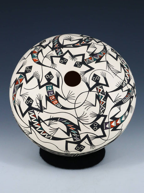 Acoma Style Painted Lizard Hand Coiled Pottery with Ladder