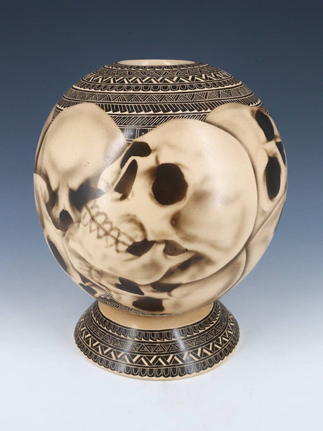 Large Laguna Pueblo Etched Bear Pottery Wedding Vase