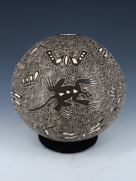 Mata Ortiz Painted and Etched Butterfly Pottery
