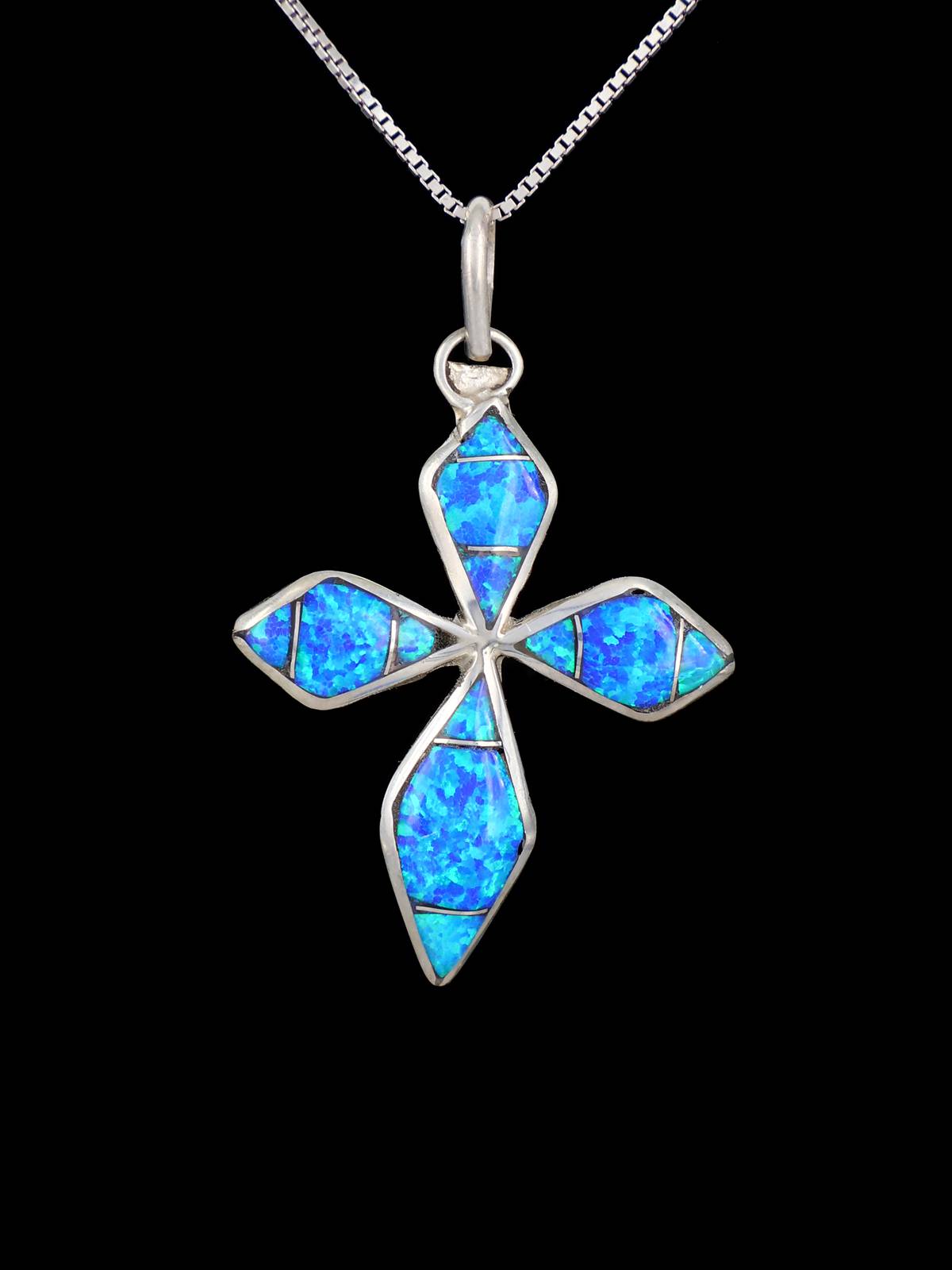 Sterling Silver Zuni Inlay Pink Shell and Turquoise Cross Pendant