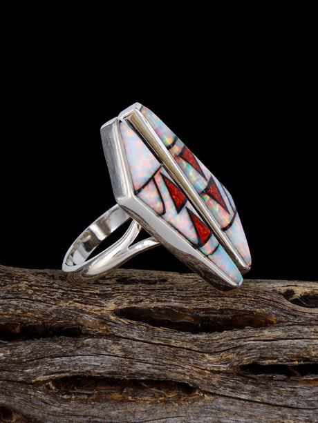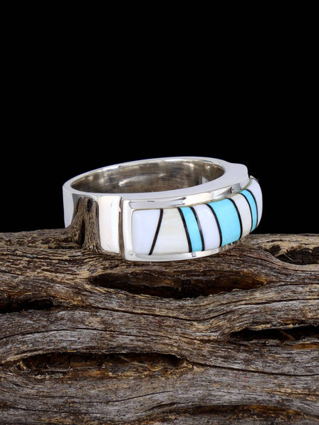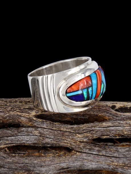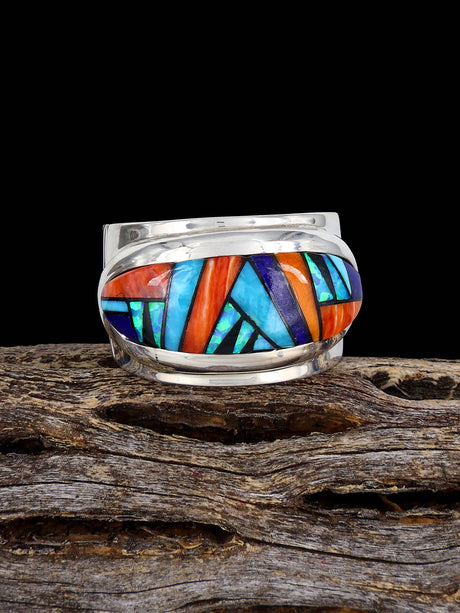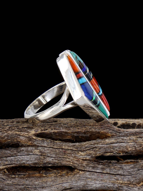 Multistone Inlay Sterling Silver Adjustable Ring Size 8