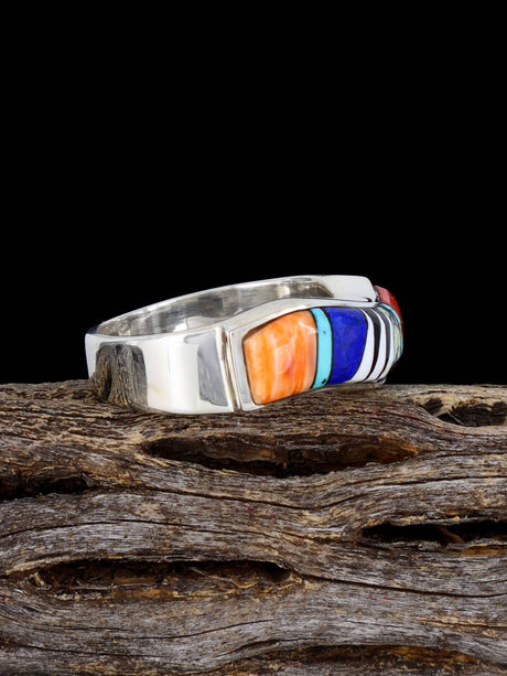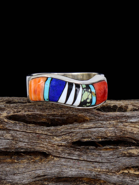 Navajo Sterling Silver Jasper and Lapis Wave Inlay Bracelet