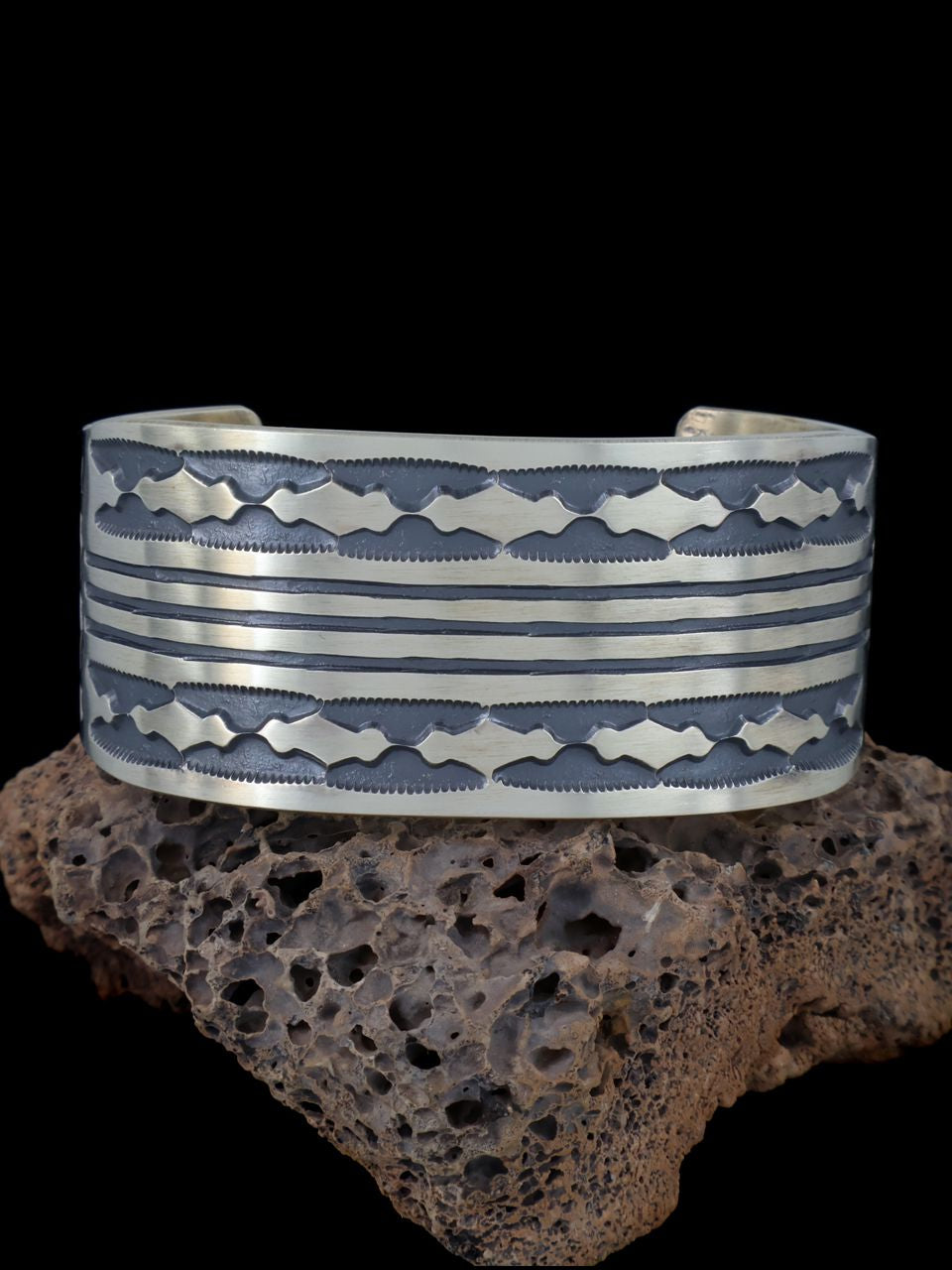 Heavy Navajo Stamped Sterling Silver Cuff Bracelet