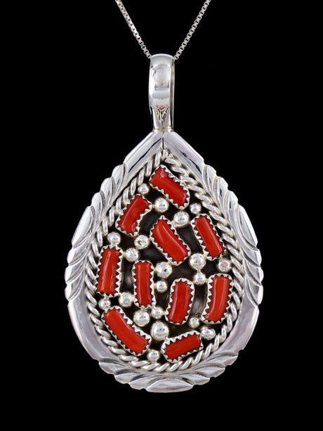 Navajo Sterling Silver Coral Waterfall Dangle Earrings