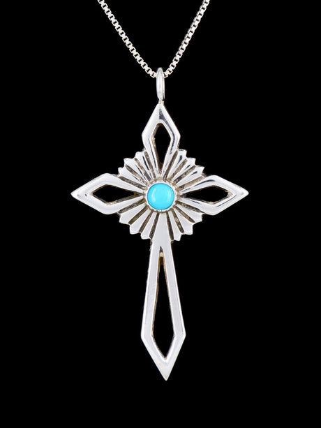Sterling Silver Zuni Inlay Turquoise and Pink Shell Cross Pendant