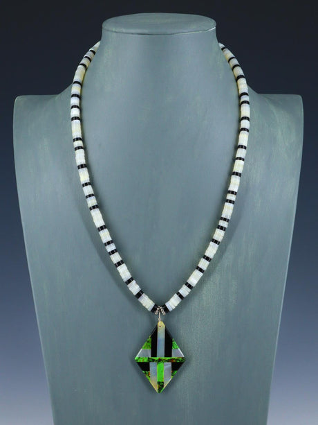 Native American Santo Domingo Mother of Pearl Mosaic Inlay Necklace
