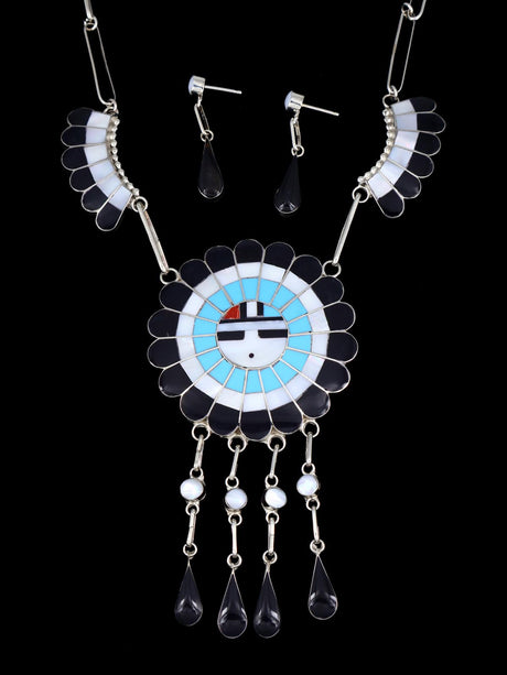 Turquoise Sterling Silver Zuni Inlay Necklace and Earrings Set