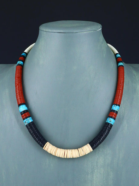 Santo Domingo Shell Pipestone and Turquoise Necklace