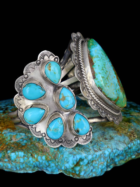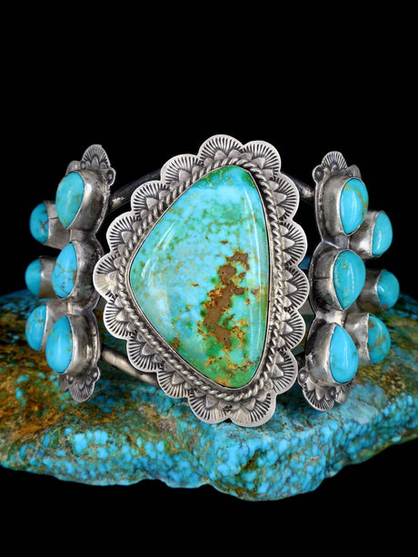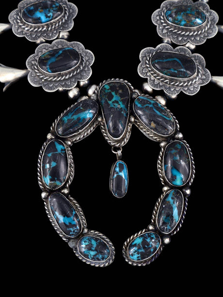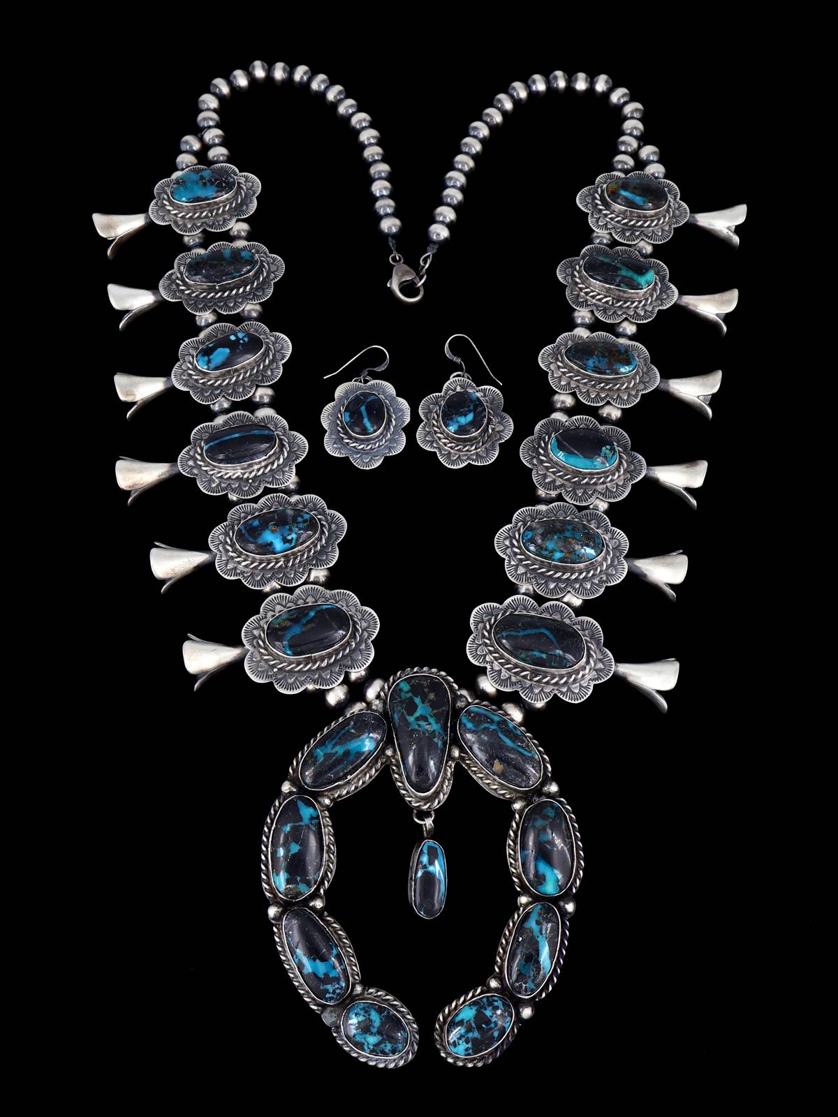 Native American Sonoran Gold Turquoise Sterling Silver Squash Blossom Necklace Set