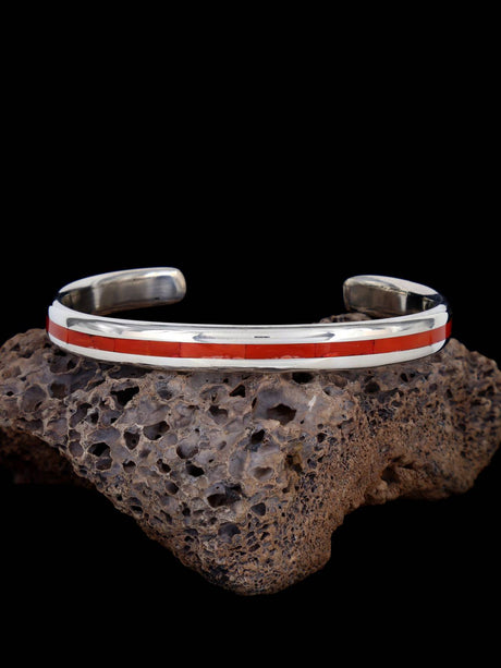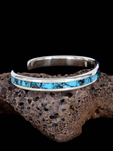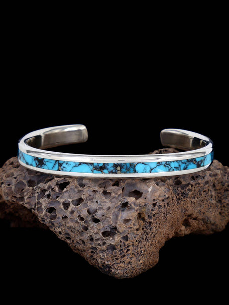 Zuni Inlay Heavy Sterling Silver Kingman Turquoise Cuff Bracelet