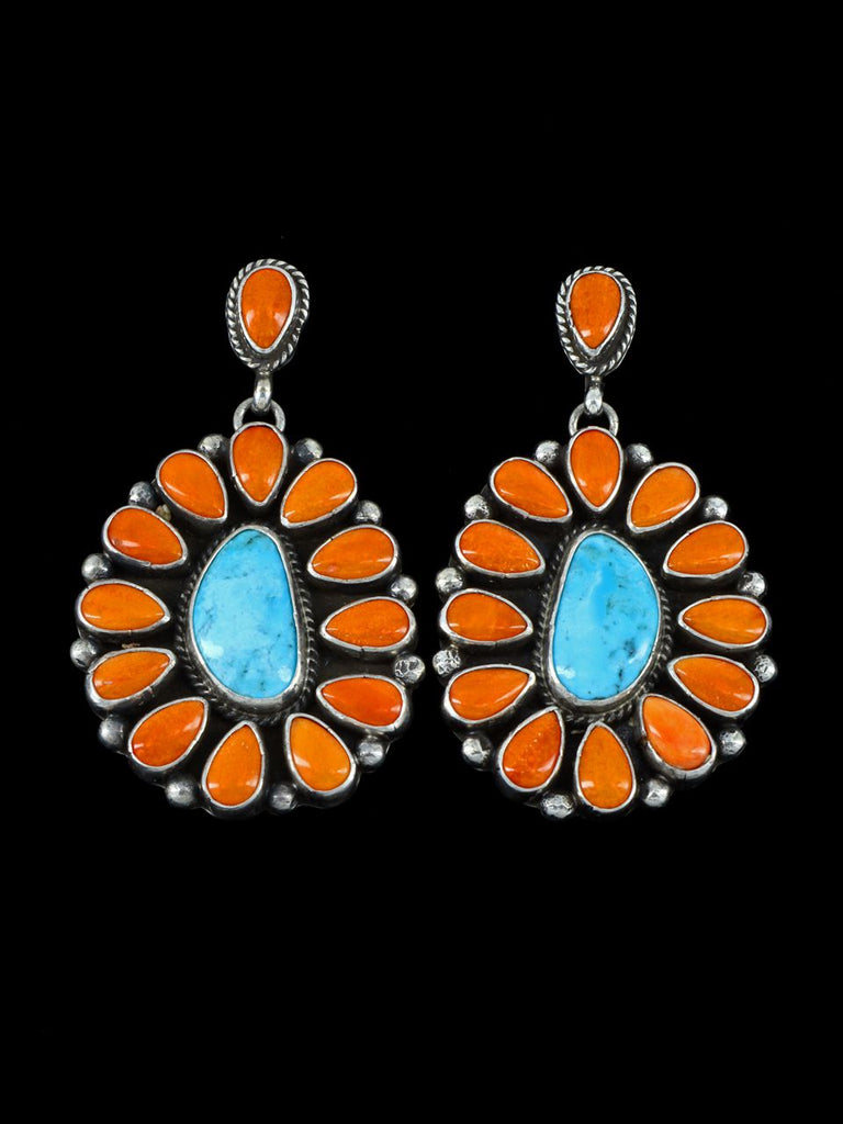 Natural Coral and Turquoise Navajo Sterling Silver Post Earrings