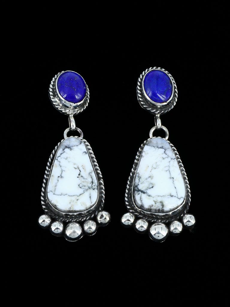 Multistone Navajo Sterling Silver Dangle Post Earrings