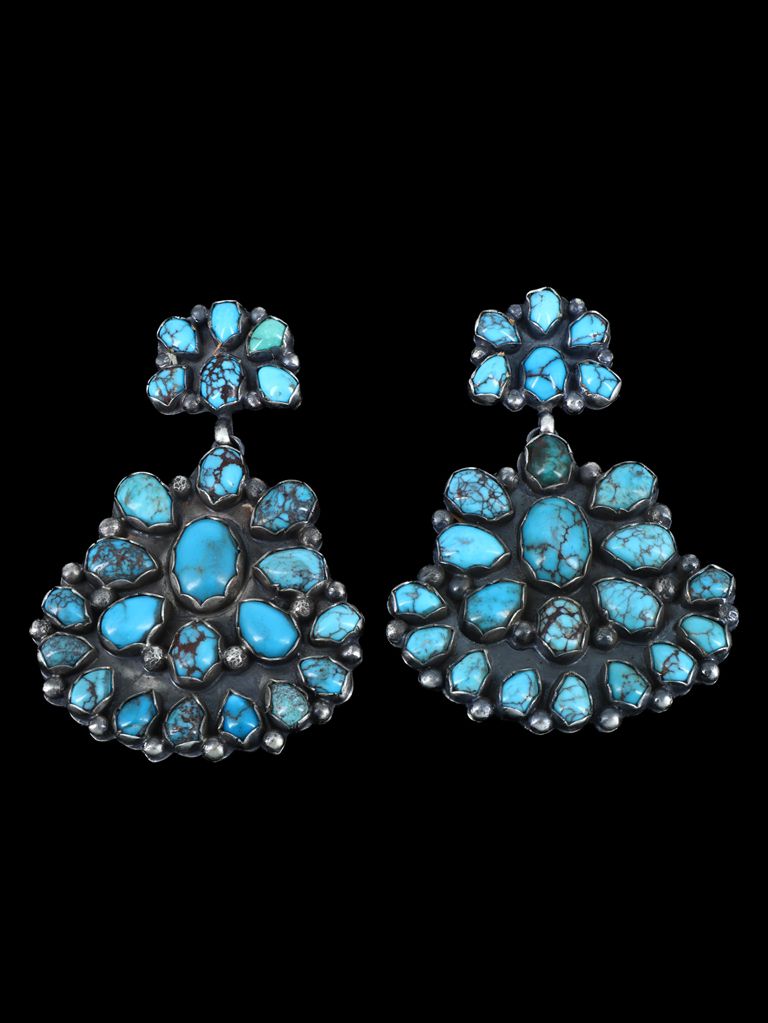 Native American Sonoran Gold Turquoise Squash Blossom Style Necklace Set
