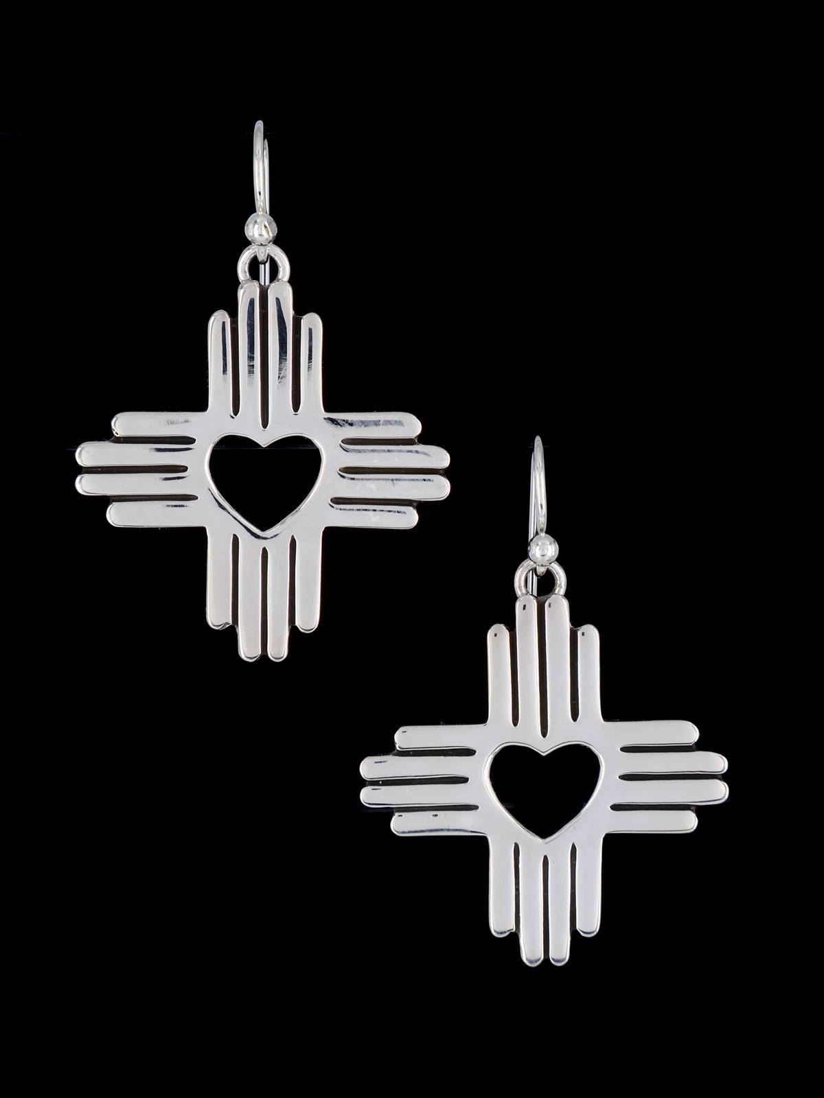 Navajo Sterling Silver Dangle Zia Heart Earrings