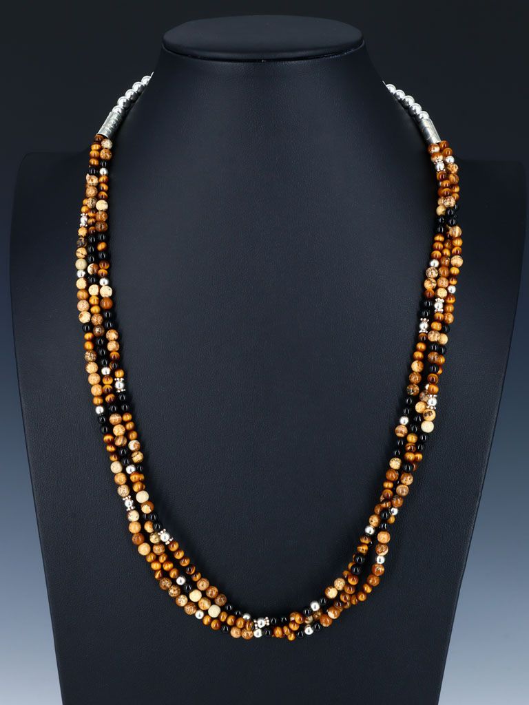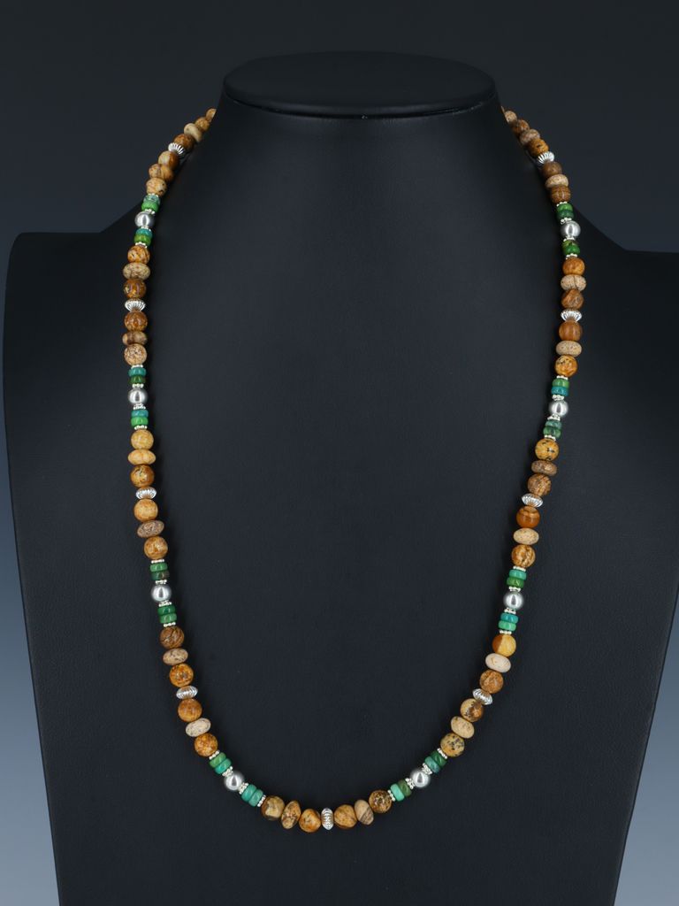 Native American Jewelry Multistone Sterling Silver Beaded Necklace