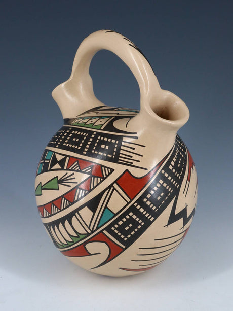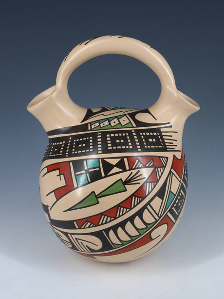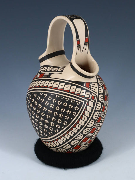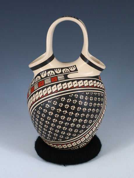 Large Mata Ortiz Hand Coiled and Painted Pottery Wedding Vase