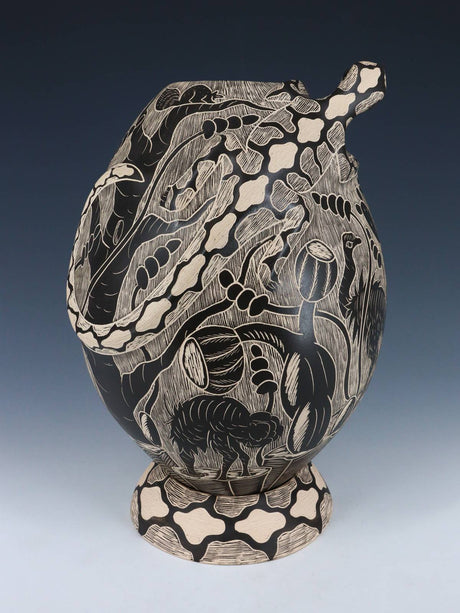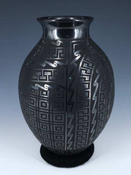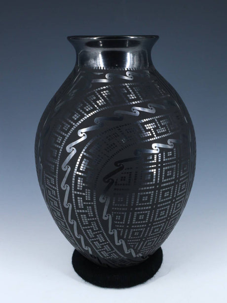 Large Mata Ortiz Hand Coiled Etched and Painted Pottery Vase