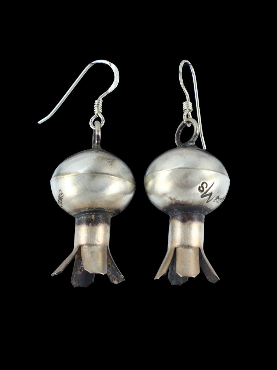 Large Navajo Sterling Silver Blossom Flute Earrings