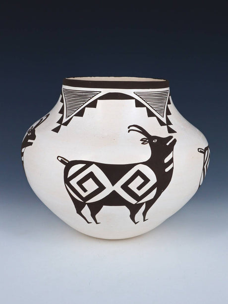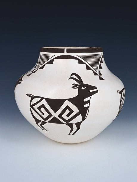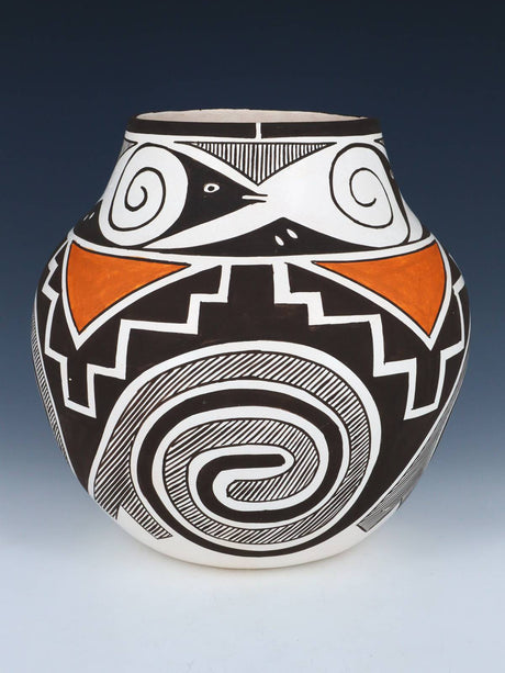Myron Sarracino, “Kaa Ooa Dinn Naa”, is a full blooded Native American Indian. He was born into the Laguna Pueblo in 1967. He began hand coiling pottery in 1984 at the age of 17.