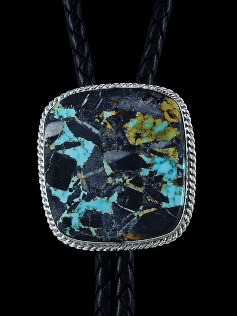 Native American Sterling Silver Sonoran Gold Turquoise Bolo Tie