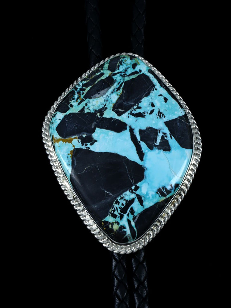Native American Sterling Silver Kingman Turquoise Bolo Tie