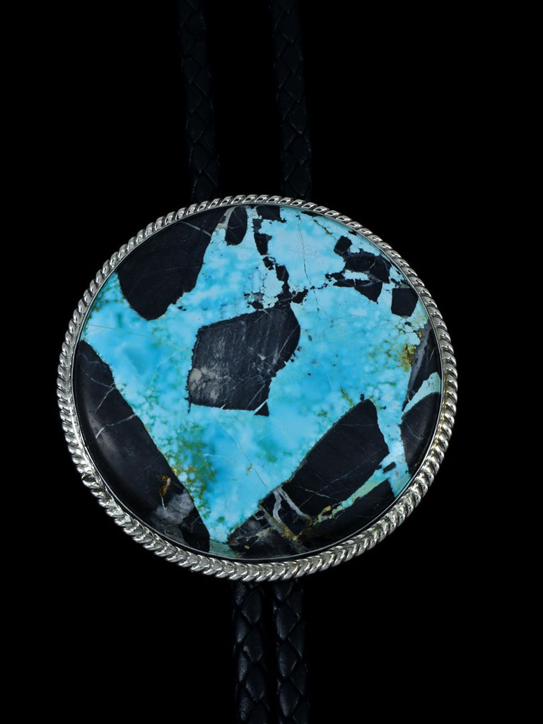 Native American Sterling Silver Blue Moon Turquoise Inlay Bolo Tie