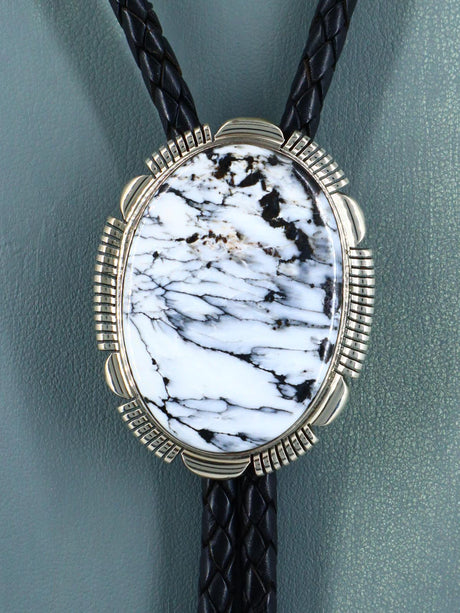 Navajo Made Sterling Silver White Buffalo Bolo Tie