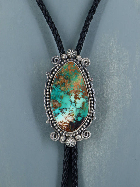 Native American Sterling Silver Natural Turquoise Bolo Tie