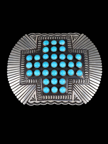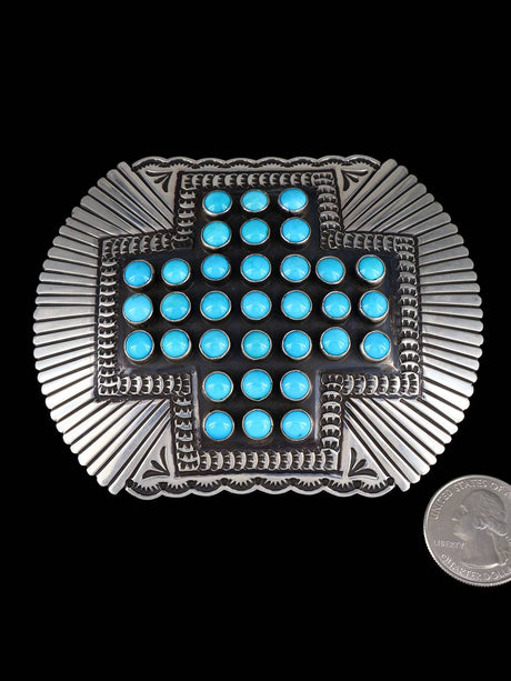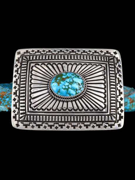 Vintage Navajo Sterling Silver Turquoise Belt Buckle