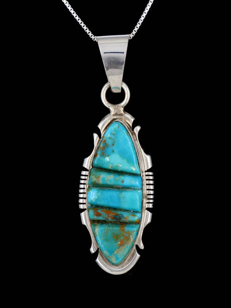 Sterling Silver Kingman Turquoise Overlay Navajo Pendant - PuebloDirect.com