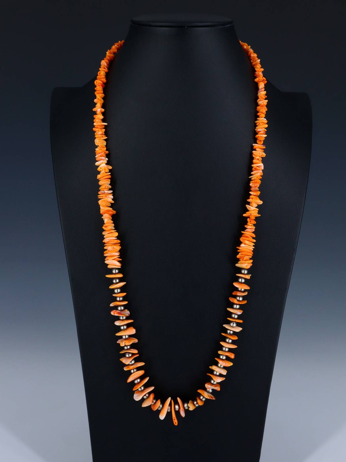 28" Navajo Bamboo Coral Multi Strand Beaded Necklace